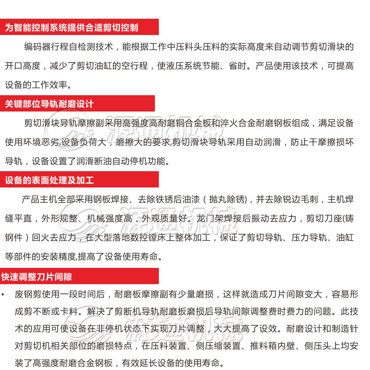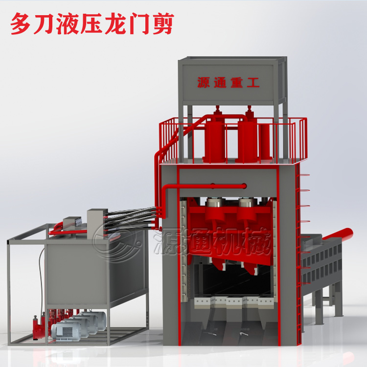 多刀液壓廢鋼剪切機適用用于金屬回收加工廠,報廢汽車拆解場,冶煉鑄造行業(yè)等, 對各種形狀的型鋼及各種金屬結構件進行冷態(tài)剪斷,加工成合格爐料。我們公司專利產品 多刀液壓龍門剪可以根據用戶的實際需求和要求,有針對性的去單獨設計一套專屬的液壓剪切機設備,常用型號:400、500、630、800、1000、1250噸多刀剪切機、可以一刀三段、 一刀五段,更好的提高使用效率。多刀片(多頭)設計,剪切塊度小精準度高整齊統(tǒng)一,避免二次剪切。源通重工多刀龍門剪采用推料箱送料,料箱尺寸大,處理料型種類多,且安裝有耐磨層經久耐用。 系統(tǒng)采用德國西門子、日本三菱、法國施耐德等知名品牌,工作過程現(xiàn)實自動花化、安全可靠。人機交互界面,可視化剪切過程監(jiān)控,操作簡便,省工省時。具有遙控操作遠程協(xié)助和故障診斷功能,使用靈活方便。工作效率高,安全性高、且大大低勞動強度和人 工成本。