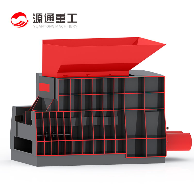 ?廢料是從頂部加入,由預(yù)壓缸壓縮廢料后自動滑落并被剪切缸